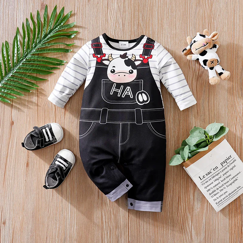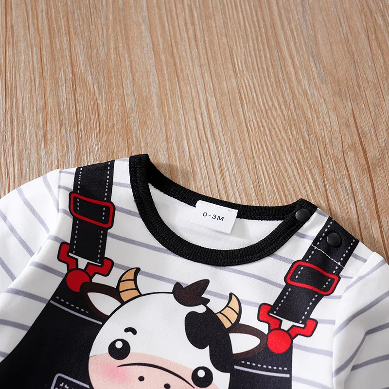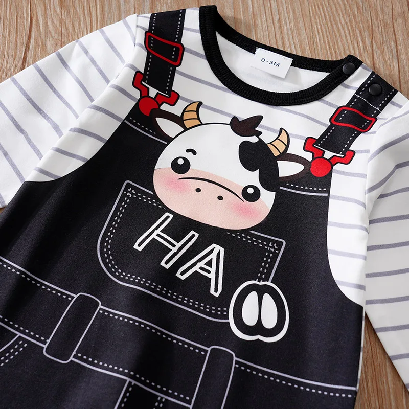 ملابس أطفال لطيف الكرتون البقرة طباعة مريحة وناعمة 0-18 الفتيان والفتيات الربيع والخريف بذلة أطفال بأكمام طويلة