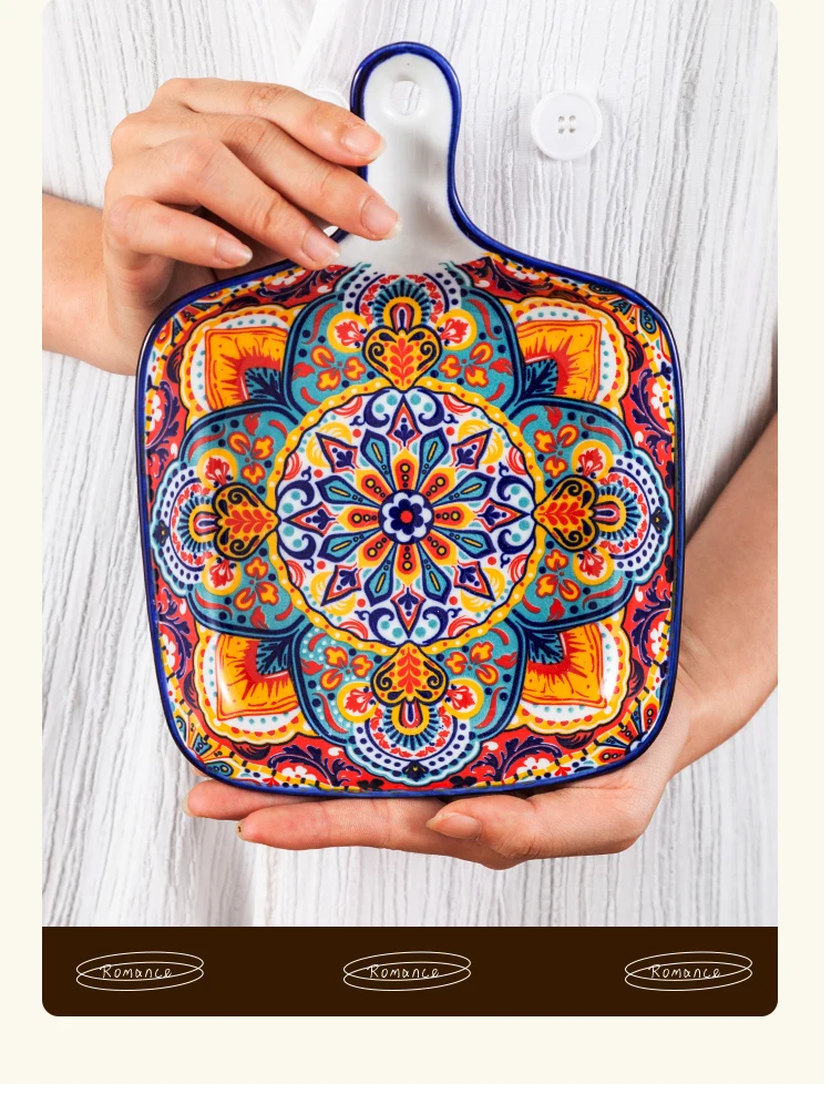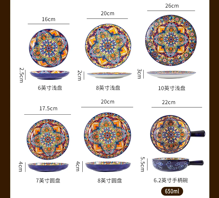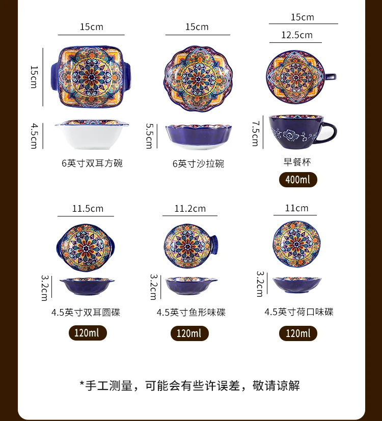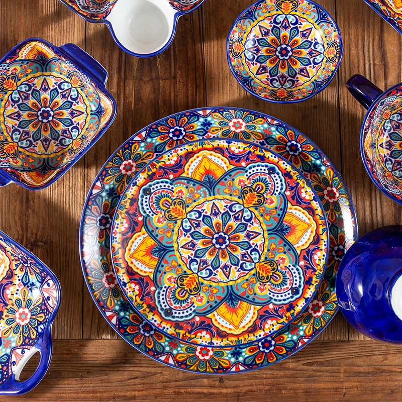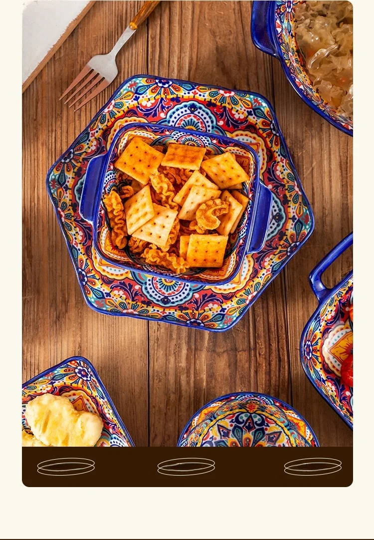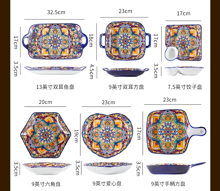 طقم أطباق وأطباق من السيراميك البوهيمي، أوعية شوربة المعكرونة والأرز، مجموعة أدوات مائدة مزدوجة الأذن لتناول الطعام في المنزل