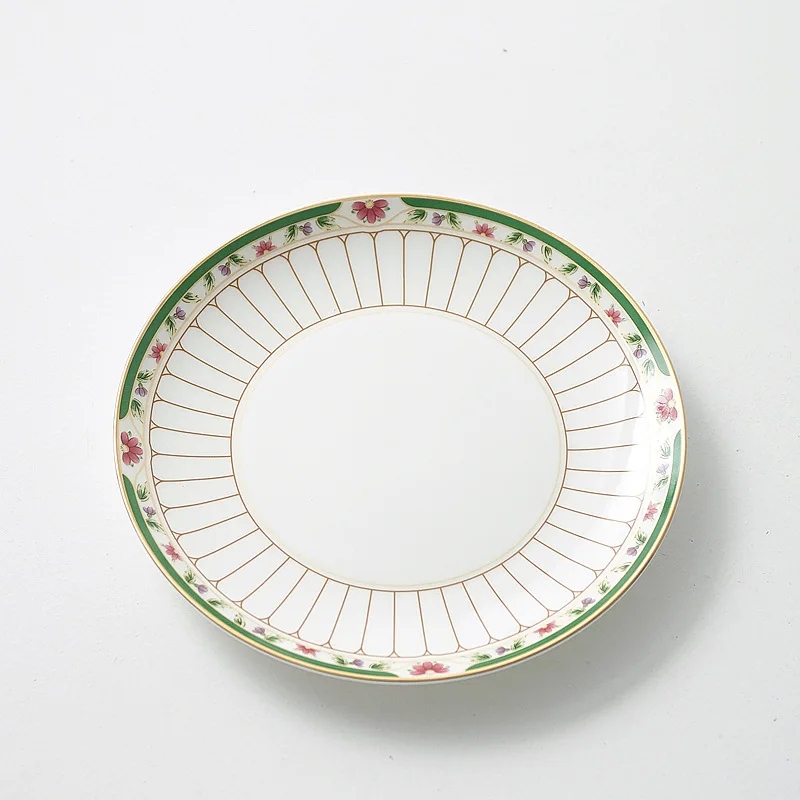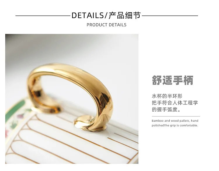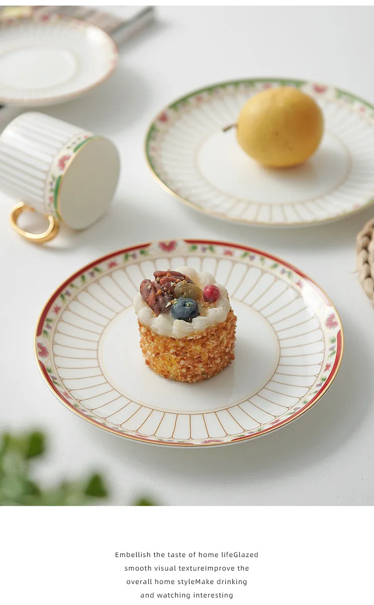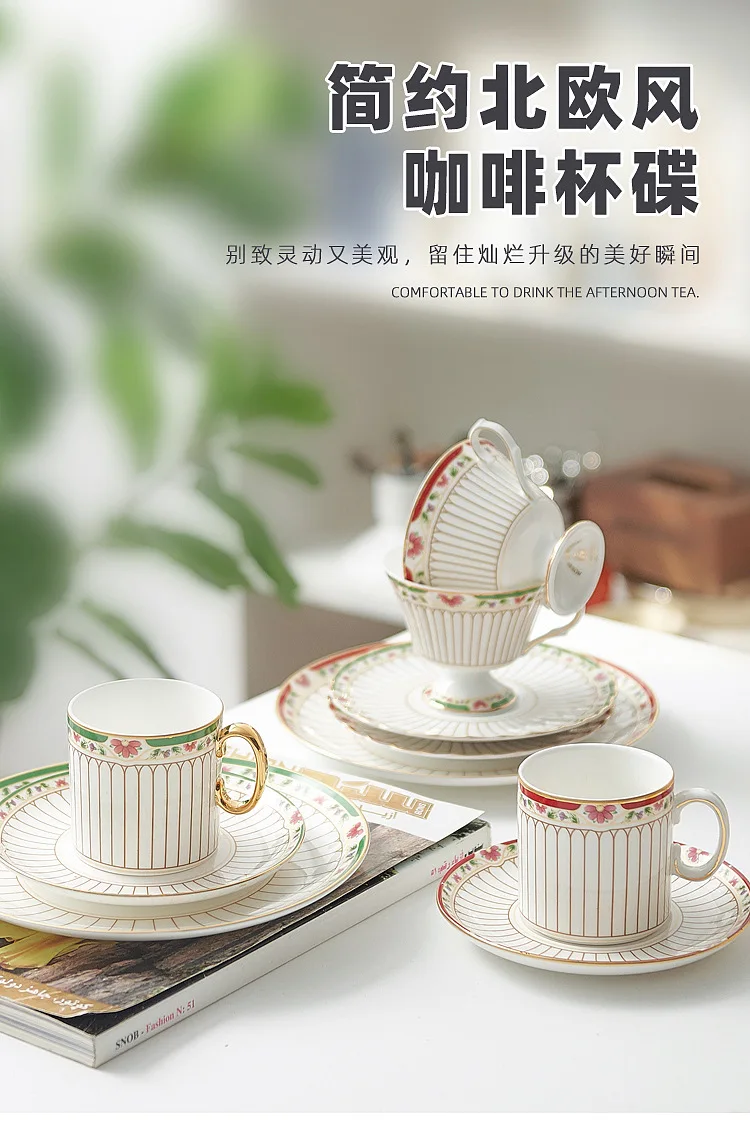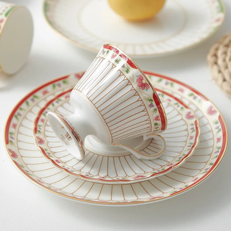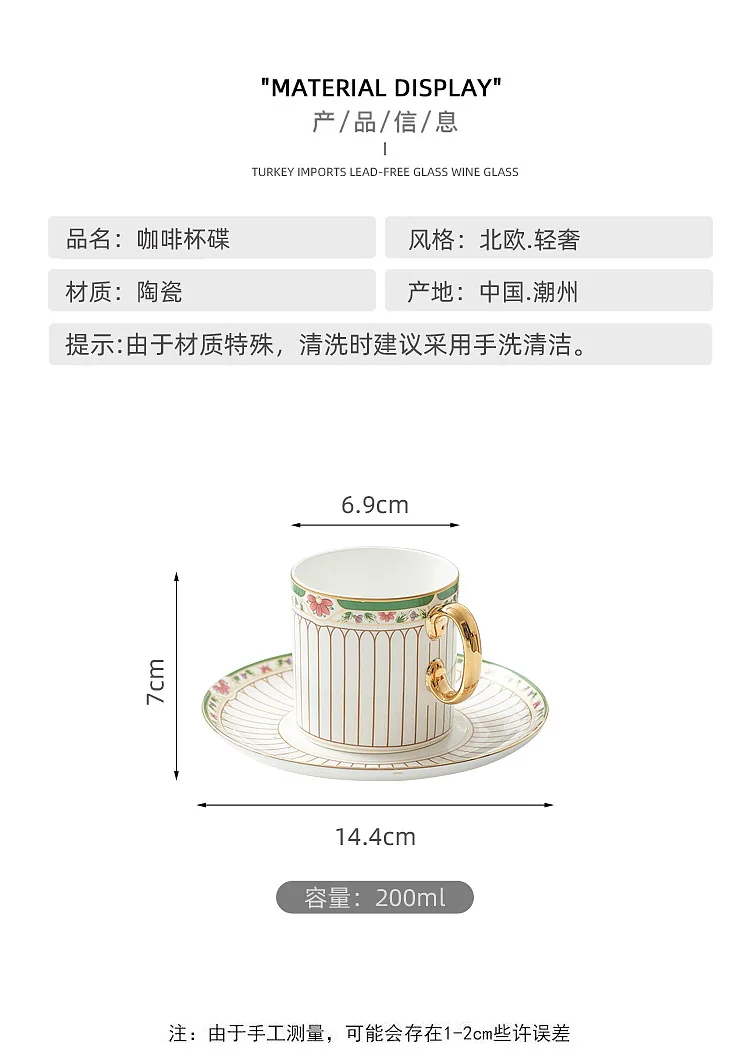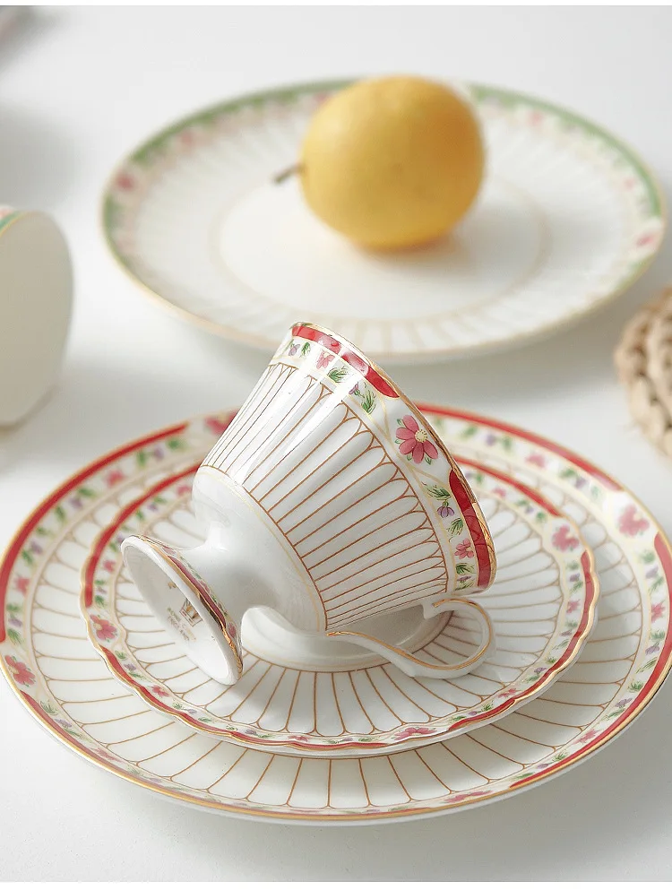 طقم أواني شاي سيراميك مخططة بالزهور، أدوات مائدة بحافة خضراء ذهبية، كوب شاي قهوة منزلي أنيق هدية للاستخدام اليومي