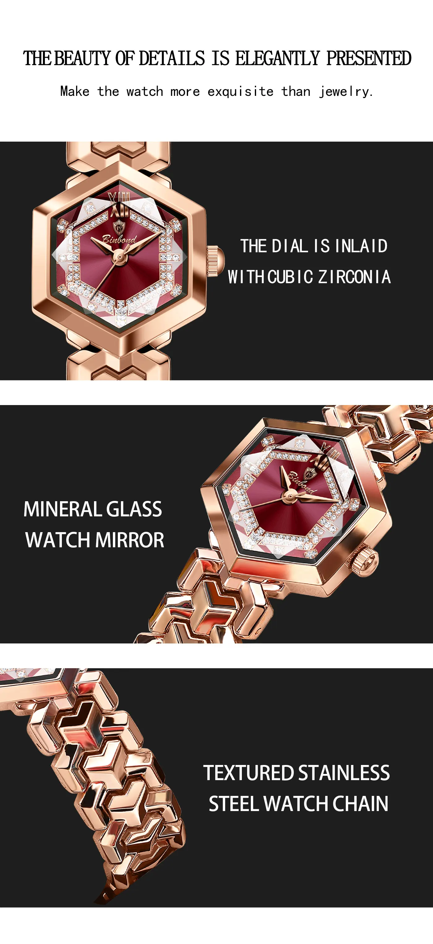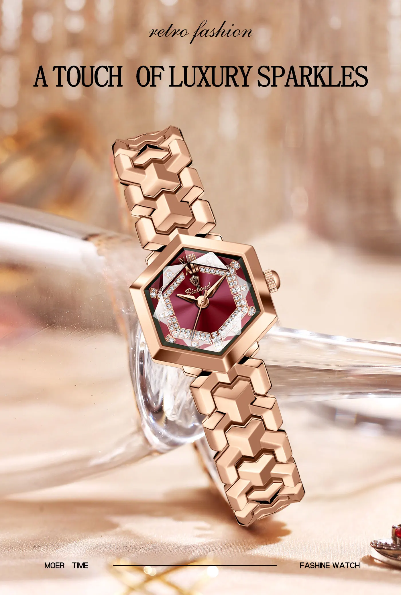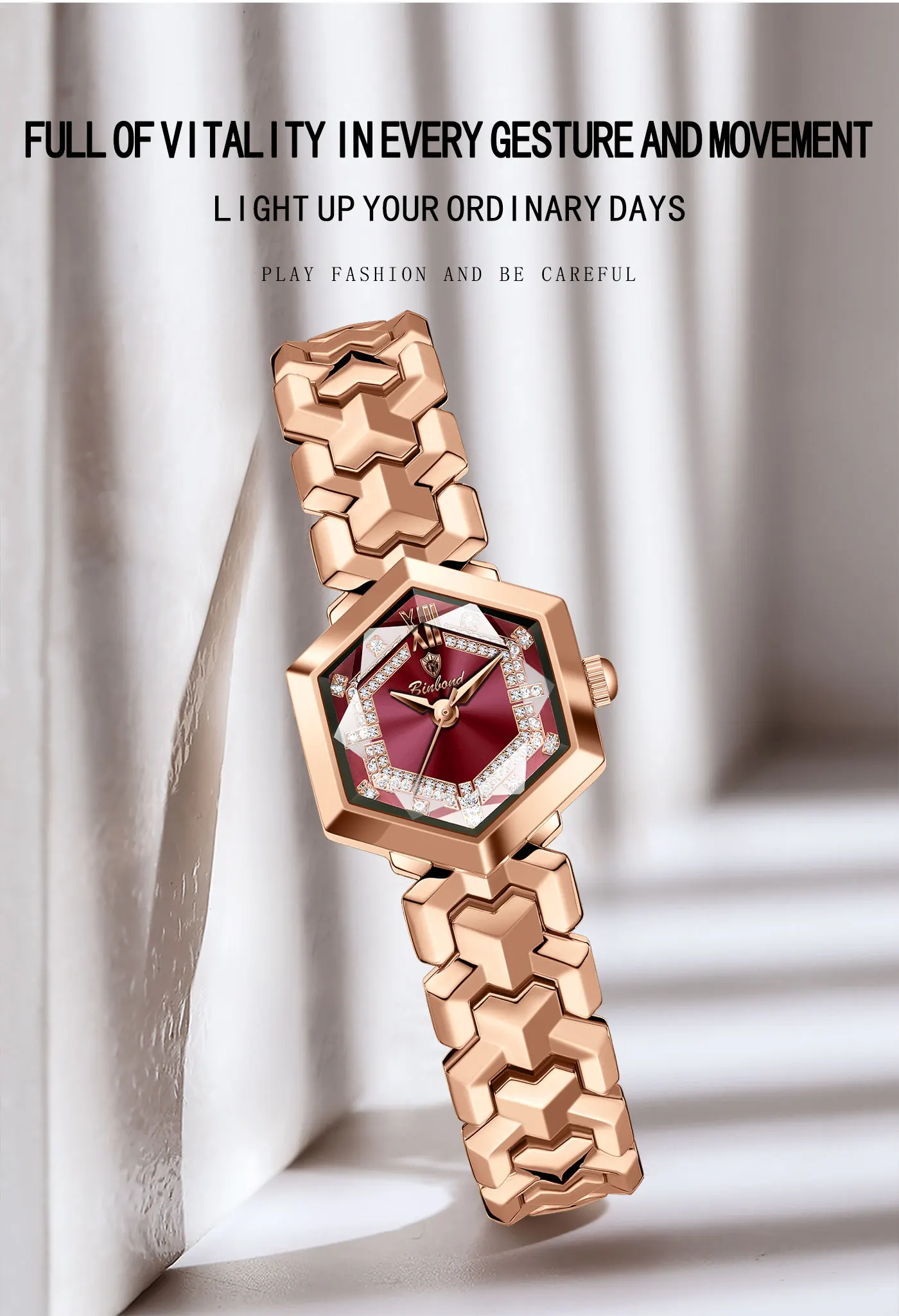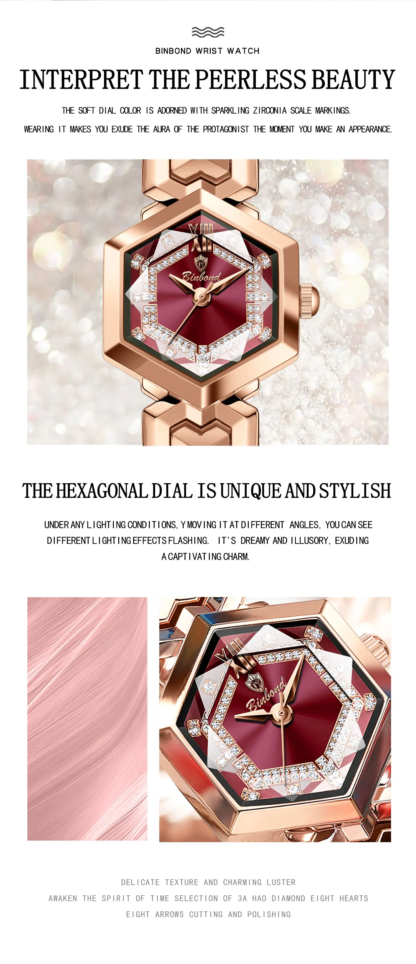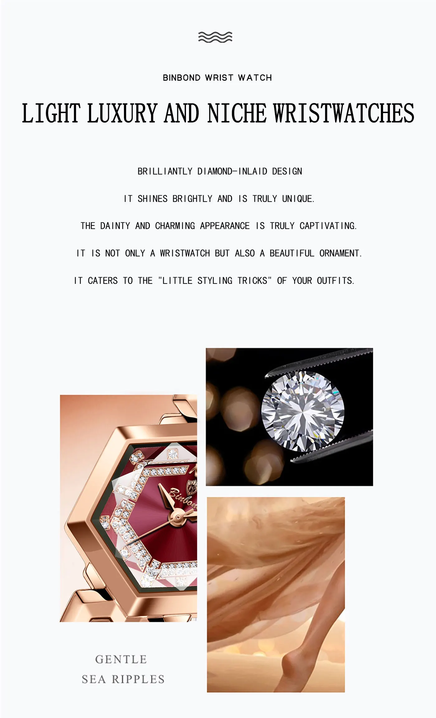 ساعة كوارتز نسائية أنيقة من BINBOND، مرآة معينية مقاومة للماء، ساعة يد ماسية مضيئة، ساعة أصلية للسيدات