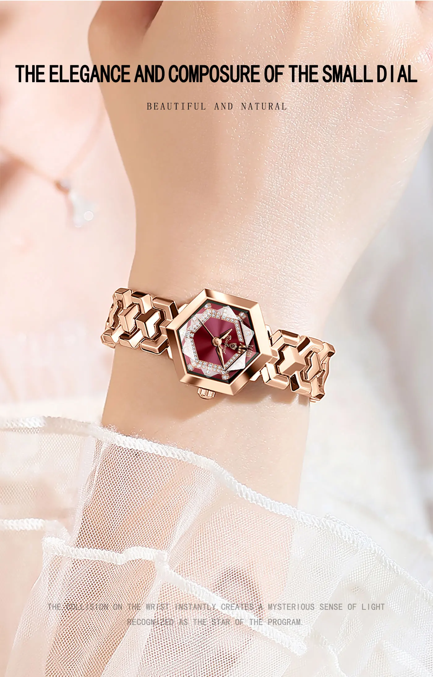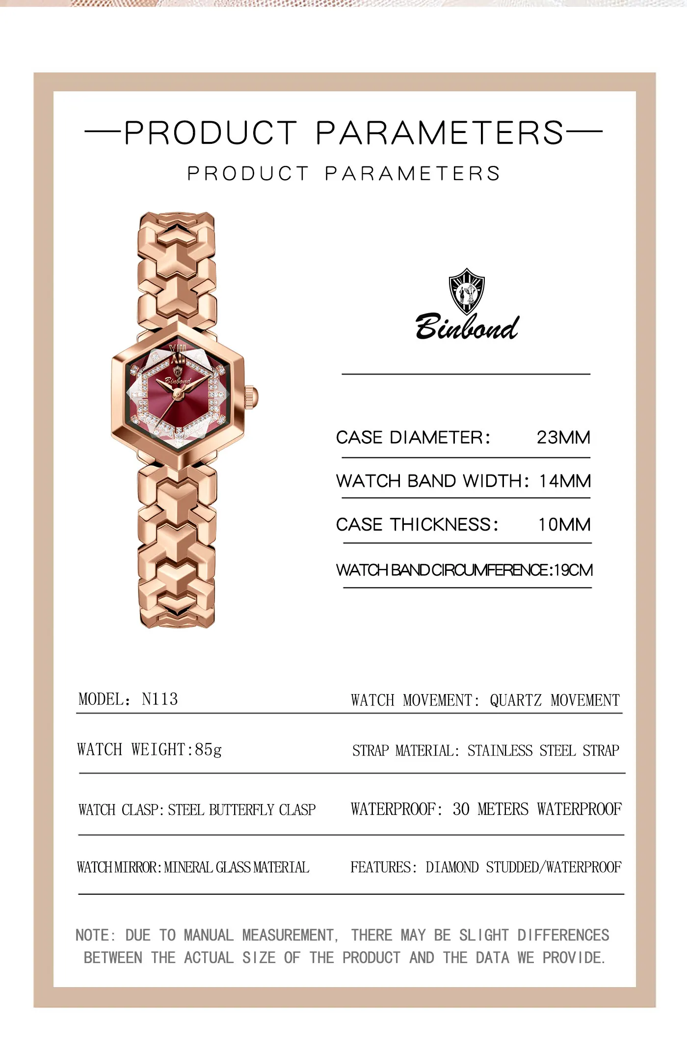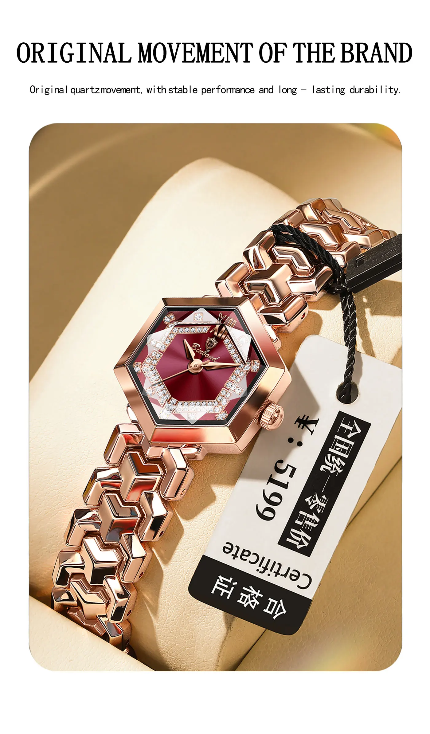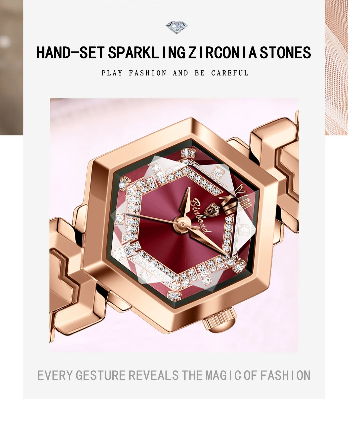 ساعة كوارتز نسائية أنيقة من BINBOND، مرآة معينية مقاومة للماء، ساعة يد ماسية مضيئة، ساعة أصلية للسيدات